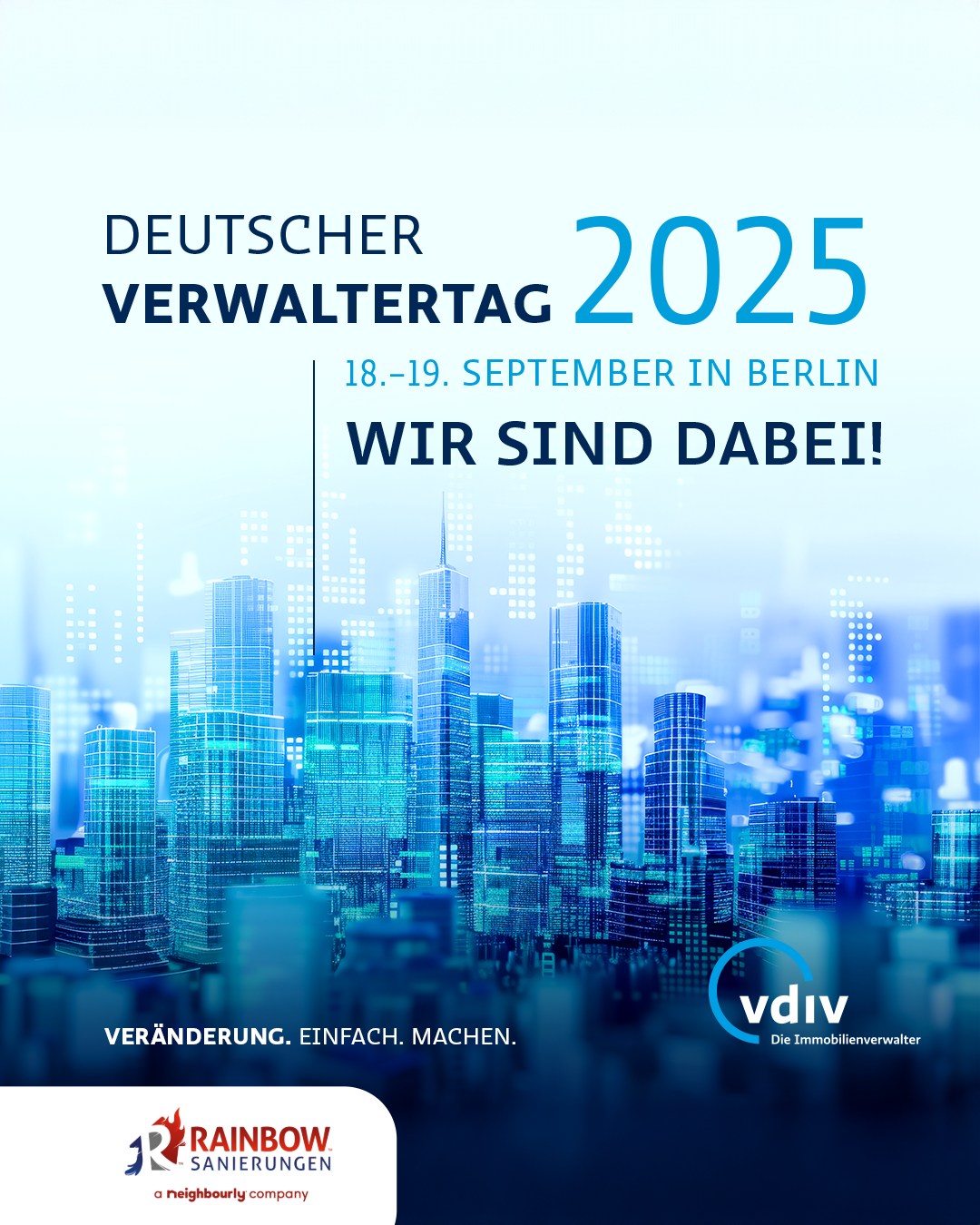 Am 19. und 20. September 2025 findet der Deutsche Verwaltertag des VDIV statt – und natürlich ist Rainbow Sanierungen auch in diesem Jahr in Berlin mit dabei! 🚀